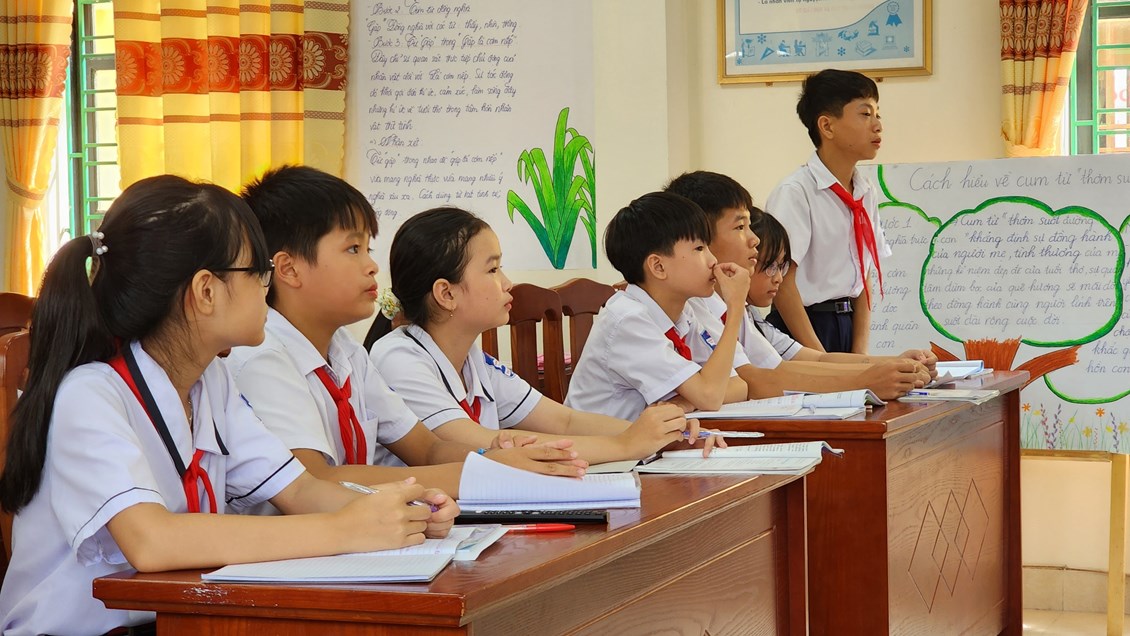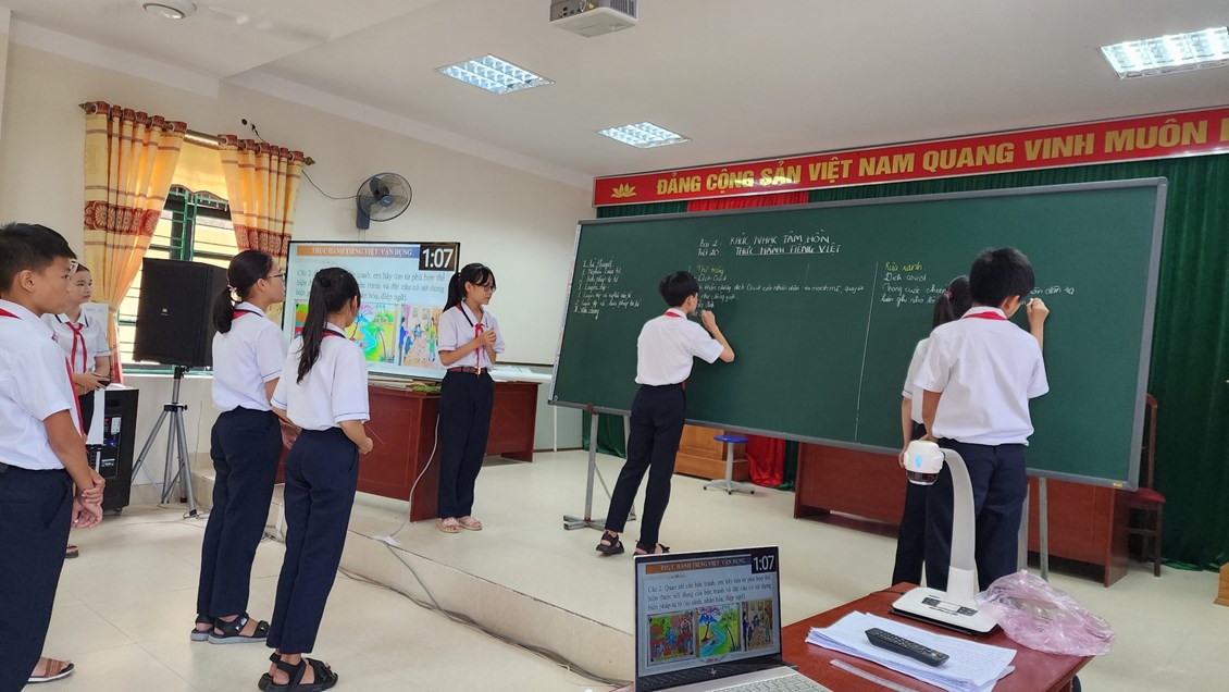 Dưới sự hướng dẫn của cô giáo Nguyễn Thị Hà học sinh được truyền đạt kiến thức, thực hành về các biện pháp tu từ trong Tiếng Việt, các em hứng thú học tập, tiết học thực sự nhẹ nhàng, sinh động; học sinh tiếp thu kiến thức một cách tự nhiên, không gượng ép, phát huy thực sự tính chủ động, tích cực.